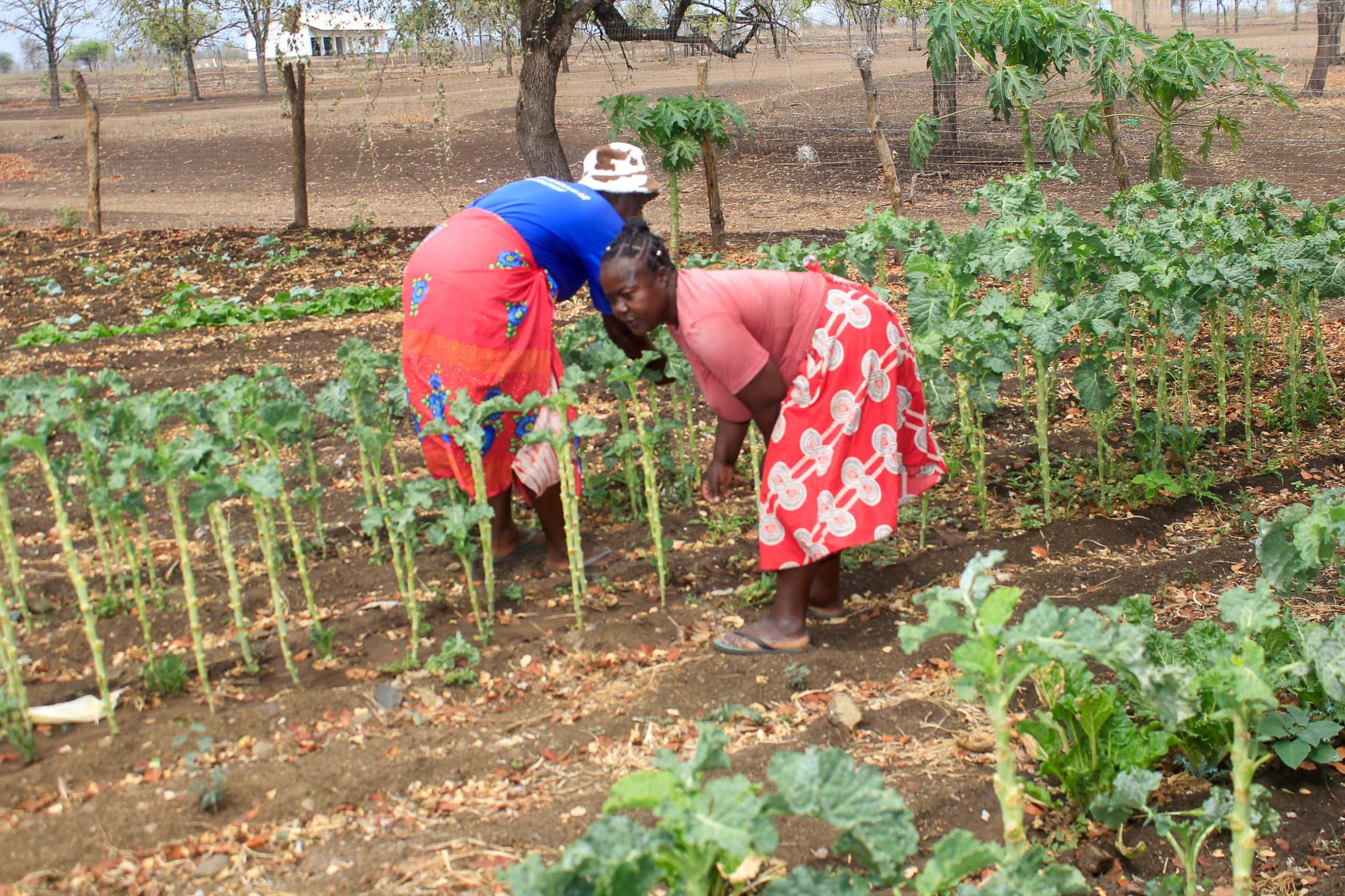 Mildred is one of the adopters who has established a backyard garden where plants various crops depending on the season. In picture one she is harvesting the maize for drying so that it can be pounded to produce the staple maize meal while picture two is harvesting vegetables for the relish to accompany the staple sadza.Through earnings generated from the CLDC activities and sale of small grains produce, Mildred solarized her 1ha backyard garden. She now produces vegetables such as cabbages, garlic, tomatoes, green beans and onions for home consumption and crop sales. Mildred utilizes the solar drier at the CLDC to preserve vegetables for household use during the off-season periods. With a monthly income of between USD100 and USD150 she has disposable income to cover medical cost and school fees for her children. The additional income has assisted her to fence the garden and build a night storage water tank for irrigation. Her current role as CLDC chairperson has enhanced her leadership skills, enabled community recognition, networking, and collaboration.